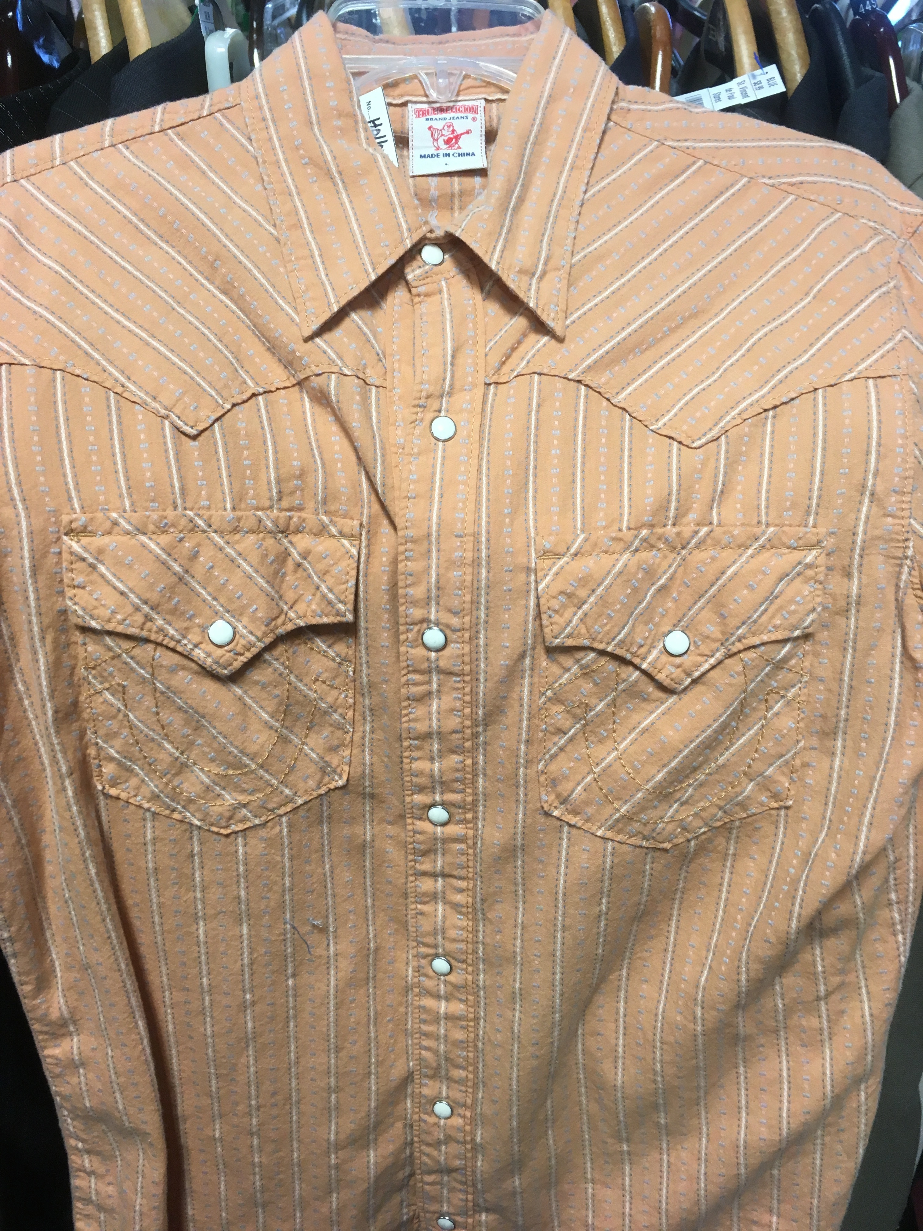 True Religion western snap button shirt Posted by on March 16, 2018March 25, 2018 I found this orange True Religion western snap button shirt at a local thrift store.