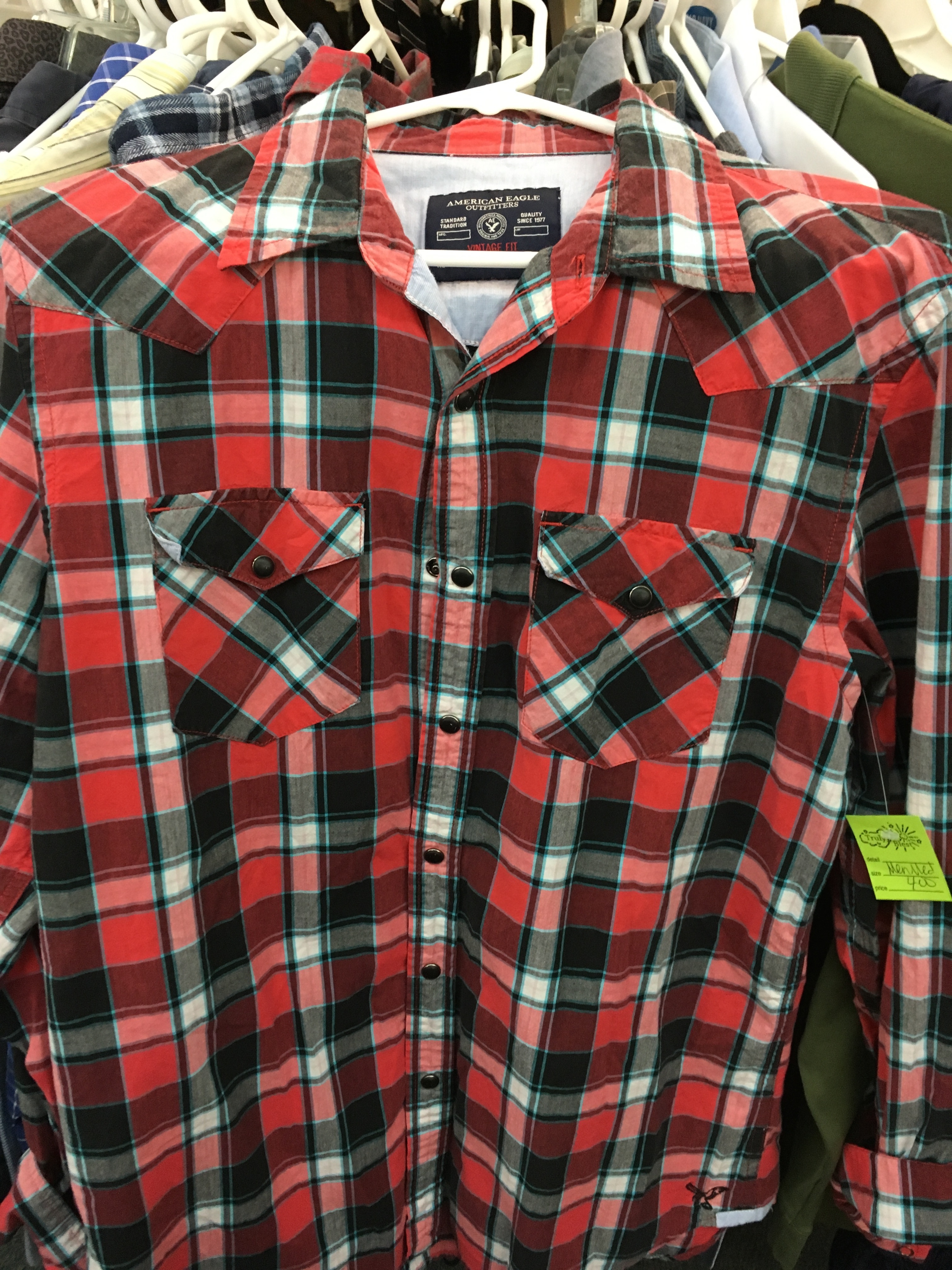 American Eagle western snap button shirt Posted by on March 16, 2018March 25, 2018 I found this American Eagle western snap button shirt at a thrift store.