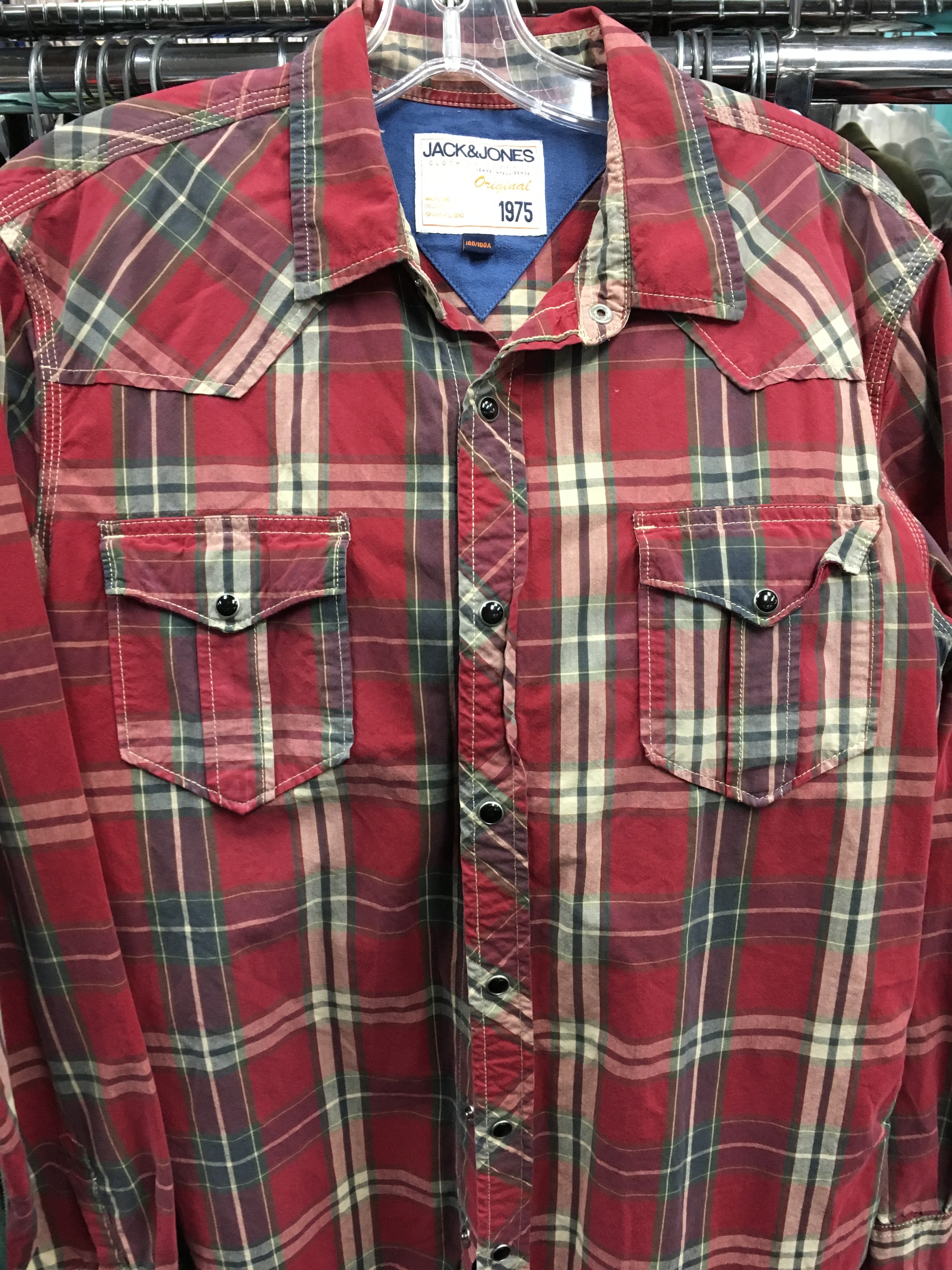Jack & Jones wester snap button shirt tag Posted by on March 14, 2018 Red Jack & Jones snap button shirt with black pearl snaps.
