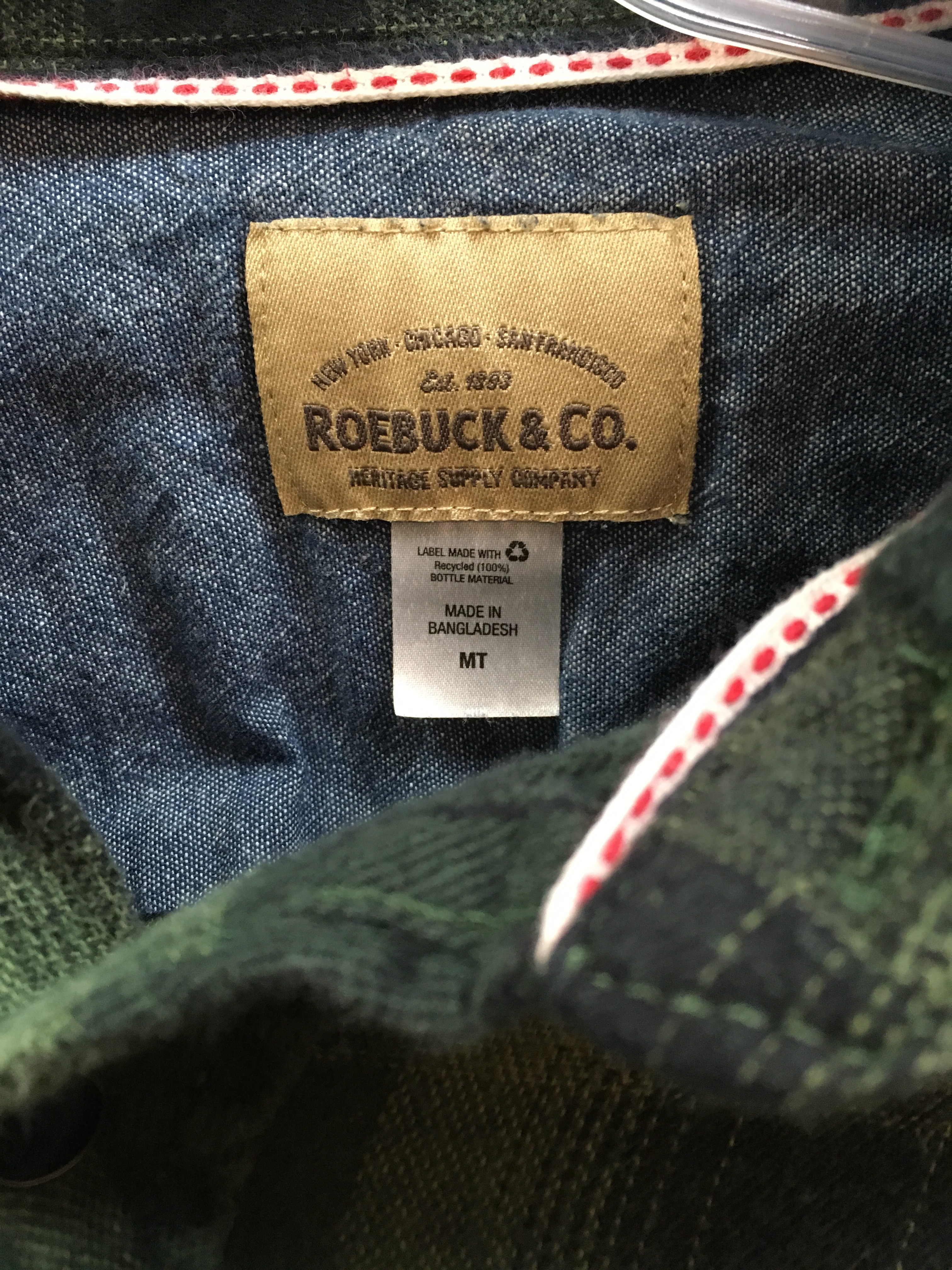 Roebuck & Co. snap button shirt tag Posted by on March 14, 2018 Roebuck & Co. western shirt tag – New York, Chicago, San Francisco – Est. 1893